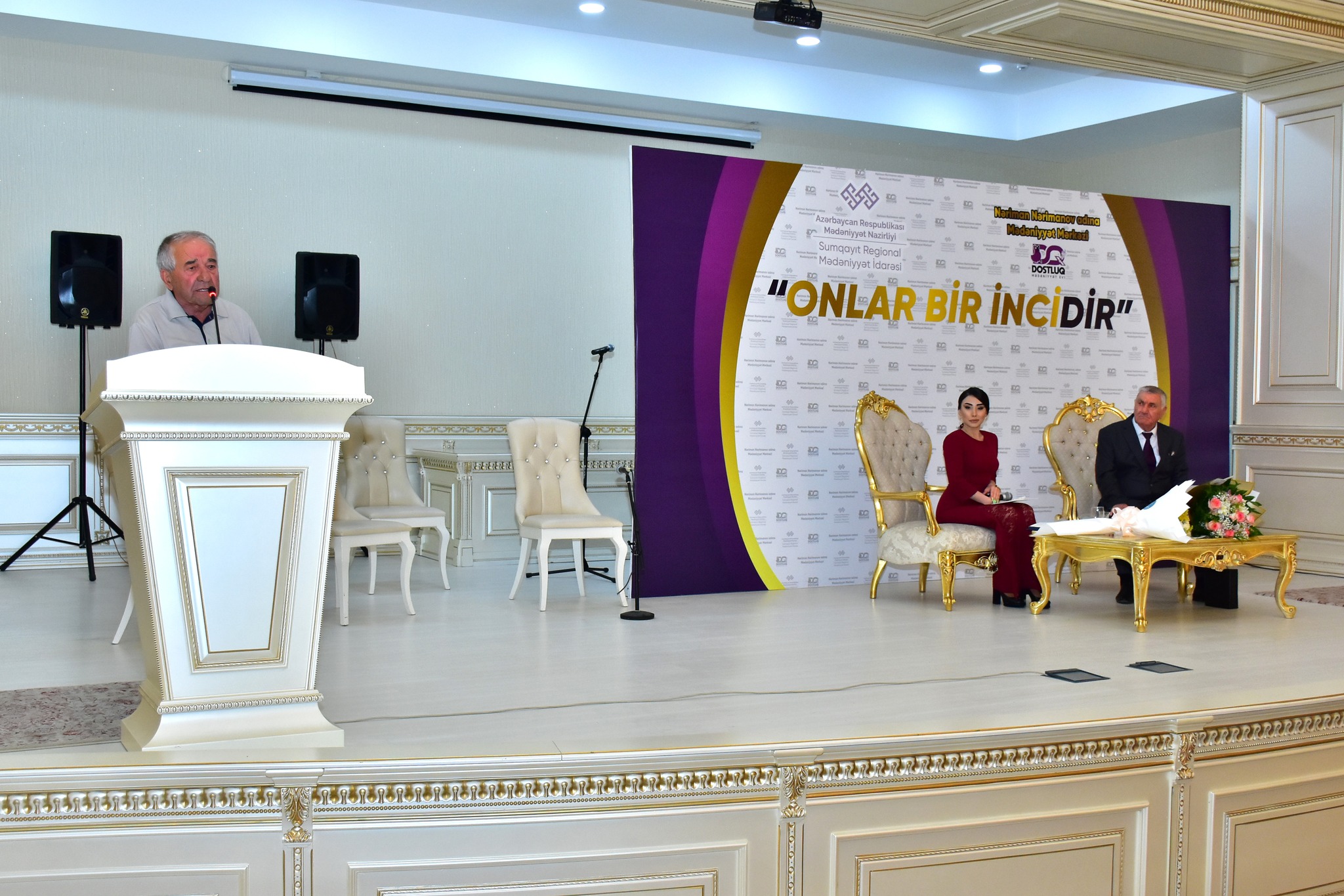 Sumqayıt şəhər Heydər Əliyev Mərkəzində Sumqayıt Regional Mədəniyyət İdarəsinə tabeli N.Nərimanov adına Mədəniyyət Mərkəzinin “Dostluq” Mədəniyyət evinin hazırladığı “Onlar Bir İncidir” adlı layihəsinin növbəti buraxılışı tamaşaçılara təqdim olunub. Layihənin bu dəfəki qonağı əməkdar mədəniyyət işçisi, tərəqqi medalı şair Əşrəf Veysəlli olub. Əvvəlcə tədbirin aparıcısı Əminəxatun Tərlan səbəkarı tamaşaçıların alqışları ilə səhnəyə dəvət edib, şairi və qonaqları salamladıqdan sonra sözü Sumqayıt Regional Mədəniyyət İdarəsinin rəisi Rəşad Əliyevə verib. İdarə rəisi qonaqları salamlayıb, şairə xoş arzularını bildirərək ona yaradıcılıq uğurları arzulayıb və hədiyyələrini təqdim edib. Sonra şairin yaradıcılığı haqqında söhbətlər aparılıb, şeirləri dinlənilib. Sədaqət Ulduzun və muğam üçlüyünün ifasında musiqilər, Sumqayıt şəhər Poeziya evinin direktoru Prezident təqaüdçüsü, Azərbaycan Yazıçılar Birliyinin üzvü İbrahim İlyaslının, Dostluq Mədəniyyət evinin bədii qiraət dərnəyinin üzvləri Mədinə Hüseyn və Nuray Şahsuvarlının təqdimatlarında şairin şeirləri, həmçinin, tədbirdə qonaq qismində iştirak edən Tatarıstan Respublikasının əməkdar incəsənət xadimi Salıxov Danil Habibraxmanoviçin şair haqqında ürək sözləri alqışlarla qarşılanıb.